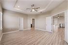 Set on a rare quarter-acre lake-view homesite, this newly built 2024 residence by Clayton Properties Group offers the advantage of modern construction without the wait, paired with a serene Lake Alfred setting. Designed for both comfort and functionality, this single-story layout spans 1, 938 square feet and centers around an open-concept living space that seamlessly connects the kitchen, dining area, and family room. The kitchen is thoughtfully appointed with Silestone countertops, stainless steel appliances, a pantry, and a counter-height island that anchors the home's social core. The primary suite is privately positioned and features a walk-in closet and an en-suite bath with dual vanities, a tiled shower, and a separate water closet. Two additional bedrooms share a pass-through bathroom, while a dedicated office provides flexibility for remote work or additional living space. Vinyl Plank flooring extends throughout the entire home, enhancing durability, continuity, and ease of maintenance. A covered patio extends the living space outdoors, offering peaceful lake views and a natural backdrop. Additional features include a screened front entry, a two-car garage, custom-fit window blinds, architectural shingles, and upgraded electric car outlet. Ring Doorbell Camera conveys with the property. Located within an HOA community and conveniently to local lakes, everyday amenities, and regional access to Winter Haven, Orlando, and Tampa, this move-in-ready home presents an exceptional opportunity for modern Central Florida living.