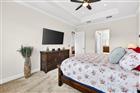 This barely lived-in Palazzo model is offered partially furnished, including custom window treatments, and truly shows like a model home. Built in 2022 by GL Homes beyond current building codes, this quality block-constructed residence features a durable tile roof and offers 4 bedrooms, 3 baths, a 3-car garage, and 2202 sq. ft. of living space with tranquil water and conservation views. Curb appeal is enhanced by decorative landscape borders, an upgraded paver driveway and walkway, and a screened entry that allows for refreshing cross breezes. Grand double doors with decorative leaded glass open to an elegant interior showcasing coffered ceilings, crown molding, and 5¼” baseboards throughout the entry, family room, and primary bedroom. The family room is further elevated by a custom-built entertainment wall, while high-quality lighting fixtures and ceiling fans are found throughout the home. The gourmet kitchen features granite countertops, stainless steel appliances, a gas range, wood cabinetry with crown molding, glass tile backsplash, under- and over-cabinet lighting, and stylish pendant lighting. The spacious primary suite overlooks the pond and includes walk-in closets, dual vanities, a separate shower with upgraded accent tile, and a private water closet. Enjoy outdoor living on the extended screened lanai, partially under roof and equipped with sun shades for TV viewing, plus ample open space to take in the peaceful pond and conservation views. The lanai is stubbed for a grill and sink, perfect for entertaining. Additional highlights include a water treatment system, washer, dryer, and laundry sink. Located in Valencia Del Sol, the premier 55+ active community in the greater Tampa area, residents enjoy resort-style amenities including a heated pool, tennis and pickleball courts, dog park, and an impressive clubhouse with a grand social hall, fitness center, card rooms, café, clubs, shows, and more. Ideally situated near Tampa, St. Petersburg, and Sarasota, this home offers the ultimate in Florida living—move right in and live like you’re on vacation every day. Items remaining if desired -