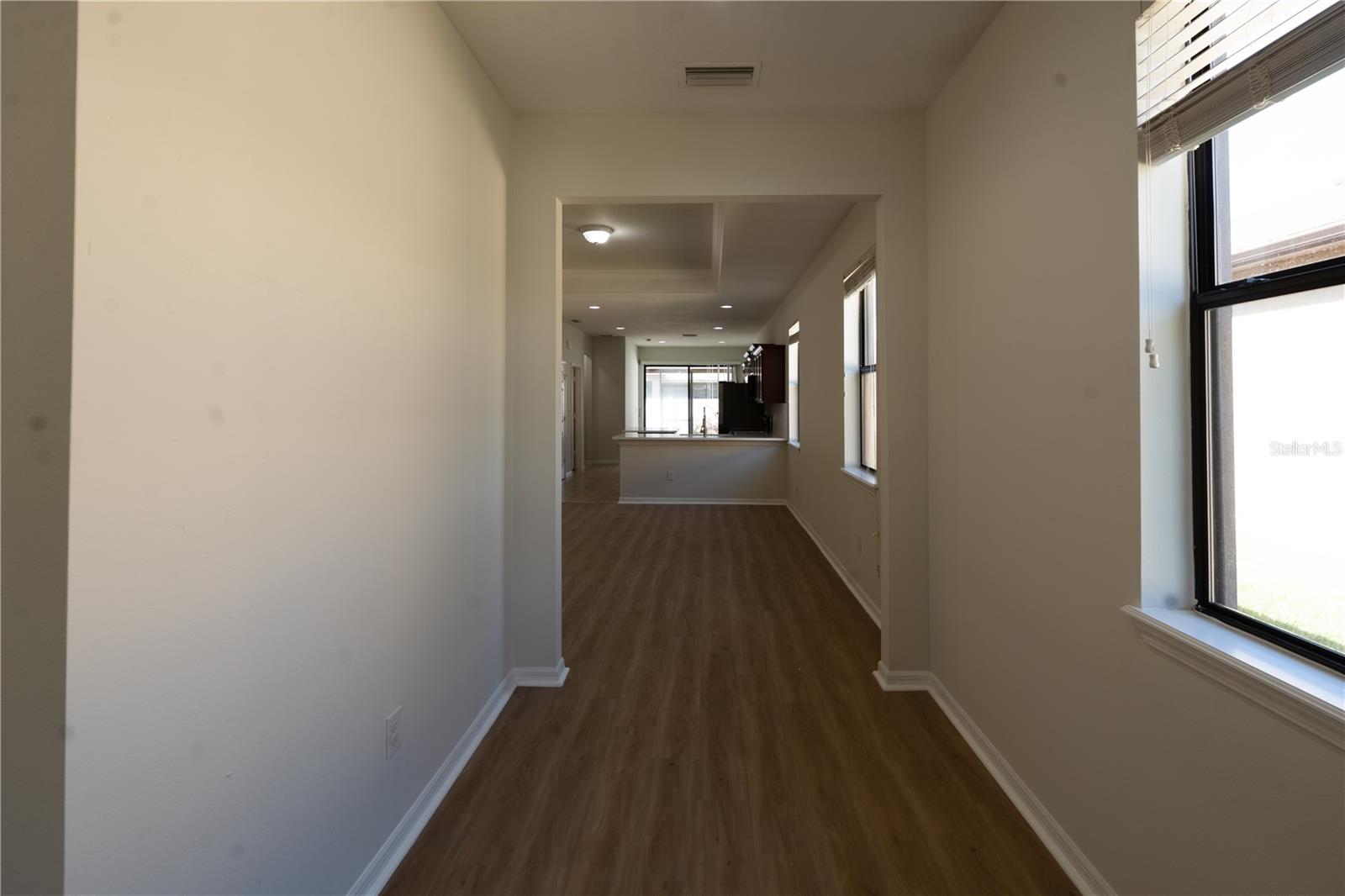 Under contract-accepting backup offers. Located in the gated community of Magnolia Park, this beautifully maintained 3-bedroom, 2-bath home with a versatile den offers the peace, privacy, and lifestyle you’ve been searching for. Designed with an efficient single-story layout, the home features excellent flow from room to room—ideal for both everyday living and entertaining. Recently upgraded with New Laminate flooring in Bedrooms and Living area, new appliances (Washer/Dryer, Refrigerator, Dishwasher, Microwave, Range) and premium quartz countertops in Kitchen and Bathrooms. Upon entry, you’re welcomed by rich wood flooring throughout the main living areas, creating a warm yet modern atmosphere, while ceramic tile in wet areas adds durability and easy maintenance. The flexible space off the foyer is perfect for a home office, den, study, e-learning area, or guest room. The spacious, chef-inspired kitchen overlooks the great room and boasts crown-molded cabinetry, a large center prep island with seating, stainless steel appliances, a dual-mount sink, and ample counter space for cooking and serving. The adjacent breakfast nook offers a cozy spot for casual meals with views of the backyard and screened lanai.