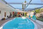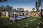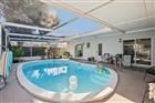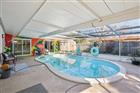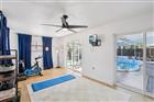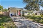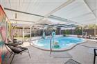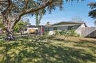 This thoughtfully designed 3-bedroom plus den, 2-bath pool home offers comfort, flexibility, and easy Florida living. Upon entry, a spacious living and dining area creates an inviting first impression, providing plenty of room to relax or entertain. The kitchen is both functional and stylish, featuring stainless steel appliances, a breakfast bar, and a pantry for added storage. A generously sized den with direct patio access adds valuable versatility, making it ideal for a home office, media space, or additional living area. The primary bedroom also opens to the lanai and includes an ensuite bathroom, creating a private retreat. Two additional bedrooms share a full bath, while a dedicated laundry room adds everyday convenience. Outdoors, the private pool and expansive lanai set the stage for relaxed afternoons and effortless gatherings. The fully fenced backyard provides room to enjoy the outdoors and includes a storage shed for added functionality. Vinyl flooring runs throughout the home, and the roof was replaced in 2022, offering peace of mind. Additional highlights include a 1-car carport, no HOA, and no flood insurance required. Conveniently located near shopping, dining, beaches, and more, this home delivers both lifestyle and location.