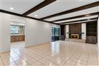 This spacious 4-bedroom, 2-bath home offers comfort, functionality, and stunning water views in a peaceful setting located on an oversized lot. A bright front living area greets you upon entry, with a versatile 4th bedroom or office featuring French doors. Continue into the main living room with wood beam accents, built-in shelving flanking an electric fireplace, and sliding doors to a screened patio—perfect for relaxing after a long day. The L-shaped kitchen boasts stainless steel appliances, a pantry, and a breakfast nook, with water views from the sink to make meal prep a pleasure. All bedrooms are on the left side of the home, with Bedrooms 2 and 3 across from a full bath with a walk-in shower. The primary suite at the back offers serene water views, a spacious vanity, and a shower/tub combo. Tile flooring runs through the main living areas, with vinyl in the bedrooms. The garage houses the laundry area with washer/dryer, a 2-car parking space, and a water softener system - tenant will be responsible for maintaining salt levels. It's ready for you to move in and start enjoying the lifestyle!