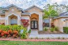 Sitting Pretty on an OVERSIZED, Nearly 1/3 Acre, Premium Corner Lot within the GATED RESERVE Enclave in the Riverwatch community of Riverglen, this spacious 4-bedroom, 3-bath home offers a home office, 3 Car Garage, Screened Patio, and a large Private Backyard! This fabulous floorplan offers an exceptional blend of comfort, style, and functionality. The thoughtfully designed split-bedroom floor plan features soaring cathedral ceilings, an open office in place of the formal dining room, and an expansive main living area that seamlessly connects the living room, breakfast nook, and beautifully updated kitchen. The kitchen showcases white cabinetry, granite countertops with matching backsplash, undermount stainless steel sink, gas range with air fryer, and a dedicated coffee bar with glass-front display cabinets. The primary suite provides private access to the covered, screened lanai and a fully remodeled ensuite bath. Recent upgrades include a new A/C (2024), remodeled bathrooms, office enclosure, new fencing, screened patio, updated ductwork and return, new ceiling fans, smoke detectors, LED lighting throughout, and front and rear landscape lighting. Interior highlights include fresh paint, a Jack-and-Jill bathroom with dual vanities, and natural gas service to the kitchen and water heater. Exterior features include 25 solar panels for significant energy savings, mature oak and palm landscaping, a large covered and screened patio overlooking the backyard, and an oversized 3-car garage with a 3-car-wide driveway. Riverwatch offers oak-canopied streets, basketball and tennis courts, and a private, family-friendly setting, all conveniently located near shopping, restaurants, schools, golf courses and an easy commute to US-301 and I-75...minutes to Tampa, St. Petersburg, and Sarasota.