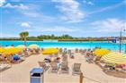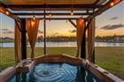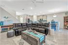 MUST SEE this stunning two-story, all-block single-family home located on a quiet cul-de-sac in the highly sought-after golf cart-friendly lagoon community of Southshore Bay! Perfectly positioned on a pond, this home offers breathtaking sunset views from the screened-in lanai featuring a ceiling fan, Pebble Tech coating, and hot tub, creating the ultimate Florida outdoor living space. The thoughtfully designed open floor plan includes a first-floor guest bedroom and full bath, a private den/home office with French doors, and exceptional storage including under-the-stairs storage and overhead garage storage racks. Upstairs you’ll find a spacious loft with storage closet, all remaining bedrooms, and a luxurious primary suite with pond views, two walk-in closets, and spa-style bathroom featuring a walk-in shower and separate soaking tub. The home offers three full bathrooms, a laundry room plumbed for a sink, and numerous upgrades throughout including light filtering and room darkening shades. The kitchen features an upgraded InstaView refrigerator, stylish backsplash, and modern finishes, while remote-controlled ceiling fans add comfort. Smart home features include app-controlled keyless entry, temperature control, and alarm system, along with security on all first-floor windows and doors including the slider. Residents enjoy resort-style amenities including a lagoon with a swim-up bar, cornhole tournaments, live shows, and a private residents-only area, plus walking trails, dog park, and golf cart access. Cable and Ultra high speed internet included with low HOA fee. This home is ideal for buyers searching for a Florida waterfront home with no lender required flood insurance and luxury outdoor living in a vibrant, amenity-rich neighborhood.