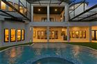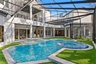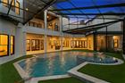 Nestled on a lush 0.88-acre estate within the most exclusive enclave of Tampa Palms, this breathtaking 6-bedroom, 6.2-bathroom contemporary masterpiece represents the ultimate in residential grandeur. The arrival experience is defined by a majestic porte-cochere entry and custom French glass-and-wood doors that open into a world of soaring 25-foot coffered ceilings. The grand family room serves as a striking focal point, featuring an iconic sleek linear fireplace and curated glass artwork that harmonizes with a distinguished blend of engineered wood and plush flooring. A standout feature of the versatile floor plan is the dedicated 1-bedroom, 1-bathroom Mother-In-Law suite, complete with its own separate private entrance to ensure absolute autonomy for guests or multi-generational living. For the professional, a custom-designed executive den offers a private sanctuary, while the formal eight-seat dining room—complete with high ceilings and a glamorous chandelier—provides an exquisite setting for world-class entertaining. Designed for the culinary enthusiast and the wellness-seeker alike, the heart of the home features a sprawling, recently updated open chef’s kitchen equipped with a double-oven suite, dual refrigerators, and an expansive central island with custom wooden shelving. This space flows effortlessly into a sun-drenched breakfast nook and the grand primary retreat. The owner’s suite is a true sanctuary, boasting a private personal sauna located just outside the suite, a spa-inspired soaking tub, a separate walk-in shower, and an expansive dual-vanity configuration with a generous walk-in closet. Ensuring climate-controlled comfort across all 12, 727 square feet are six high-efficiency HVAC zones. Every level of this two-story estate is easily accessible via a private elevator or the elegant carpeted staircase, ensuring seamless movement between the bespoke living spaces and the specialized amenities that define this one-of-a-kind residence. The lifestyle continues in the unparalleled entertainment wing, featuring a state-of-the-art media theater and a massive recreational room anchored by large faux-wood beams, a secondary fireplace, and a refined wet bar with a private wine cellar. Outside, a screened oasis awaits, featuring a geometric saltwater pool and integrated spa—recently enhanced with a new pump and heater—and a comprehensive outdoor kitchenette designed for the ultimate Florida lifestyle. With a five-car garage and additional secure outdoor parking, this estate offers total privacy and convenience within a premier 24-hour guard-gated community featuring a clubhouse and heated community pool. Residents enjoy moments-away access to the Tampa Palms Golf & Country Club and the serene trails of Flatwoods Wilderness Park, all while being a short commute from the University of South Florida and the vibrant business hubs of North Tampa.