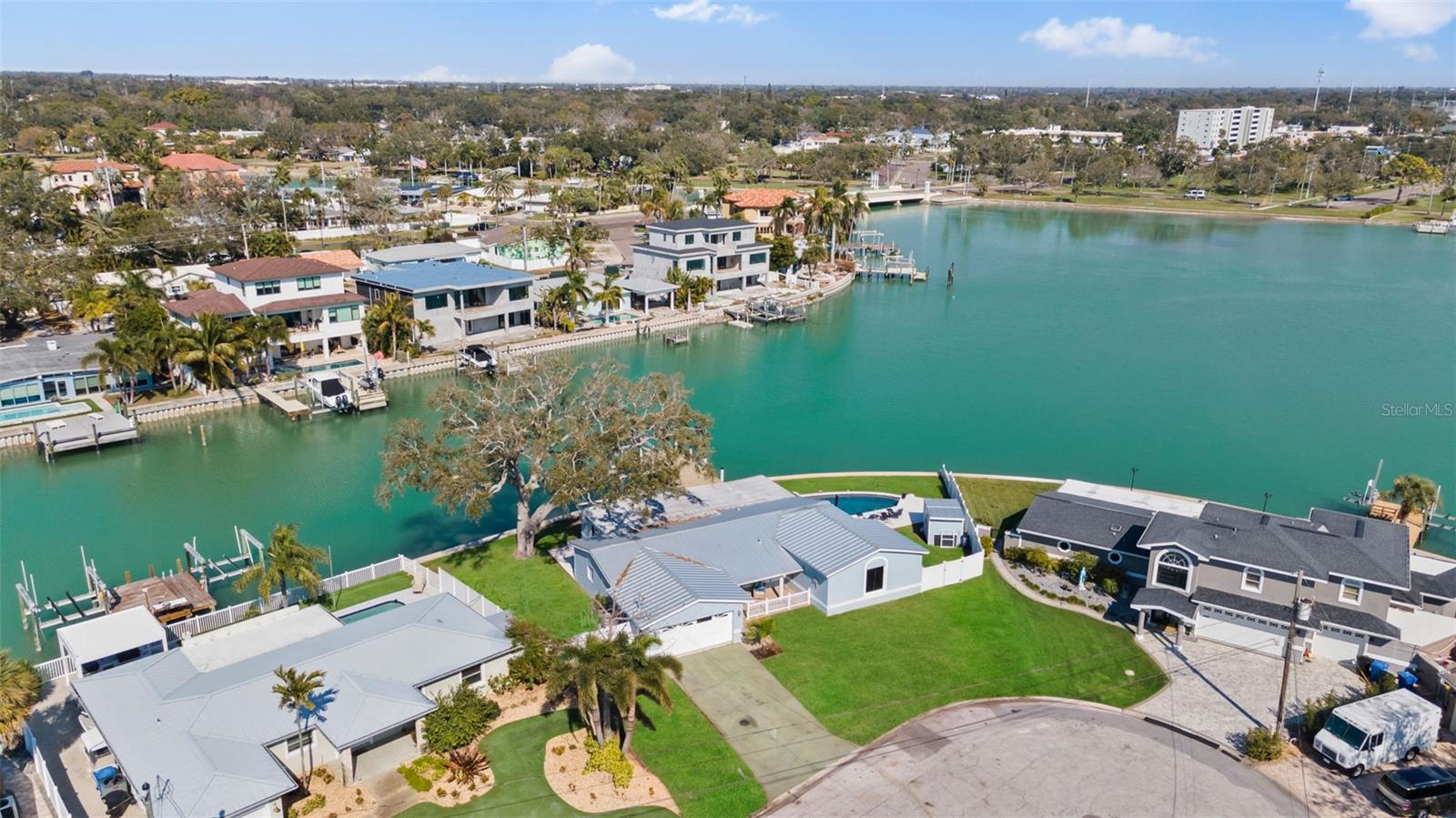 Under contract-accepting backup offers. This exceptional waterfront residence is positioned on a premier corner lot at the end of a quiet cul-de-sac in the highly sought-after Causeway Isles, offering sweeping canal views and stunning sunset skies. With 3 bedrooms, 3 bathrooms, and a 2-car garage, the home blends thoughtful design with effortless coastal living. The light-filled living room showcases dramatic floor-to-ceiling windows that frame the water, creating a seamless connection between indoor comfort and outdoor beauty. The open kitchen is designed for both everyday living and elevated entertaining, flowing gracefully into a formal dining area ideal for hosting. Outdoors, your private waterfront retreat awaits, featuring a sparkling pool, expansive patio, and private dock with a 10, 000 lb boat lift (2021), offering quick boating access and the ultimate Florida lifestyle. Recent upgrades include a new metal roof (2022), RainBird irrigation system (2023), a majority of windows upgraded to hurricane impact, new AC (Nov 2025), and updated electrical (Nov 2025). The home has been professionally remediated and fully renovated post-storms with new drywall, flooring, appliances, and cabinetry, delivering both peace of mind and modern finishes throughout. A fenced yard and oversized storage shed enhance functionality and privacy, completing this rare waterfront offering just minutes from the Gulf beaches, dining, and everything that makes St. Petersburg one of Florida’s most desirable coastal destinations.
