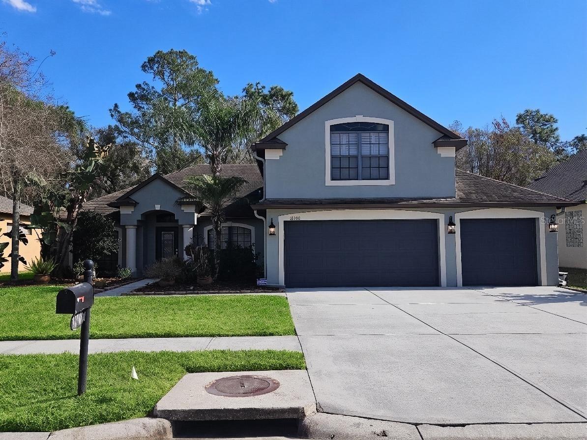 One or more photo(s) has been virtually staged. This well-appointed home combines space, function, and location making it an exceptional rental opportunity – beautifully designed and offering 5 bedrooms, 3 full bathrooms and 3 car garage, with approximately 2, 482-square-feet. Featuring an open floor plan with thoughtful separation of living areas, this home is ideal for both everyday living and entertaining. Upon entry, you’ll find a formal dining room perfect for hosting gatherings, along with a dedicated office/study that provides a quiet space for working from home or studying. The heart of the home is the expansive kitchen and family room combination, showcasing a kitchen with an abundance of counter and cabinet space and an open layout that keeps everyone connected. The downstairs primary suite offers a private retreat, complete with a spacious en-suite bathroom featuring a garden tub, separate shower, and direct access to the screened lanai—perfect for relaxing at the end of the day. Three additional secondary bedrooms are also located on the main level and are conveniently situated near a full hall bathroom. Upstairs, the fifth bedroom provides exceptional versatility and can function as an entertainment space, or private guest suite. This area includes its own full bathroom and walk-in closet, offering privacy and flexibility for a variety of needs. Step outside to enjoy the large screened lanai overlooking a fully fenced backyard, ideal for outdoor living and entertaining. A three-car garage with storage cabinets provides ample room for vehicles, tools, and extra storage. With fresh paint throughout the interior in a modern, neutral gray color palette, and new carpet in two downstairs bedrooms, and the upstairs suite, this home feels bright, clean, and move-in ready. Lawn service included in rent. Easy access to the interstate for convenient commuting to Tampa, Wesley Chapel, and Lutz. Equal Housing Opportunity.
