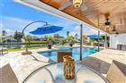 Tucked away on a quiet cul-de-sac, this exceptional waterfront residence offers 125 feet of frontage and features four bedrooms and three full bathrooms, blending comfort, functionality, and thoughtful upgrades throughout. Vaulted ceilings enhance the open, airy feel, complemented by tile flooring and ceiling fans throughout the home. Plantation shutters are also found throughout and are paired with automated retractable blinds in the dining room, kitchen, and outdoor kitchen. The spacious chef’s kitchen is designed to be as practical as it is inviting with granite countertops, a natural gas Thermador cooktop, custom maple cabinetry with pull-out drawers and a full pantry cabinet, and newer stainless-steel appliances including a Miele dishwasher, LG refrigerator, Wolf warming drawer, Dacor built-in convection wall oven and microwave, Zephyr range hood & wine refrigerator. The convenient kitchen pass-through window also frames a serene, tranquil view. Origin impact bi-fold doors open wide from the dining room to create a seamless indoor-outdoor living experience. Stepping outside, you find where this home truly distinguishes itself, featuring a saltwater Gunite pool, raised spa with spillover waterfall, newer spa heater and pool pump motor, and a covered lanai with wood ceilings. The expansive, private back yard is anchored by an impressive outdoor kitchen housed beneath a four-gable gazebo with a pitched roof, vinyl beaded ceiling, and oversized fan. The outdoor kitchen features 14 feet of concrete cabinetry with stylish stone veneer and offers stainless storage, granite countertops, a TrueFlame 32” four-burner natural gas grill with side burner, Gozney natural gas pizza oven, outdoor-rated refrigerator, pull-out trash and recycling, and stainless bar sink. Sonos speakers are mounted in the outdoor kitchen, pool area, and patio with separate amplifiers and custom volume control. This space was designed for effortless entertaining while enjoying life on the water – from casual afternoons to evening gatherings under the lights. All bathrooms have been updated with custom cabinetry, granite countertops, and quartz in the pool bath, with dual sinks in both the primary and guest bathrooms. Impact-rated PGT hurricane windows have been installed in the family room, living room, and primary bedroom, along with the Origin impact accordion doors in the dining room, an impact pool bath door, a hurricane-impact front door and storm shutters on remaining windows. The oversized two car garage includes a split-system air conditioner, insulated attic and epoxy-coated floors, while the laundry room features custom-built-in cabinetry with open shelving. Other recent improvements include newer driveway pavers, an updated front porch with new tile, and new doors and trim throughout the home. Additional exterior features include newer outdoor fans, a wall-mounted TV, Ring alarm system, pool closet and two Wally Watt storage sheds. Thoughtfully updated, beautifully maintained, and ideally located just minutes from downtown St. Petersburg, this waterfront residence offers a prime opportunity to enjoy space, style and outdoor living at its finest!