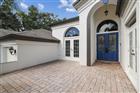 Welcome to an EXCEPTIONAL waterfront estate in the GATED enclave of Meyers Cove, where custom all-concrete block construction meets refined coastal luxury. Low HOA fees include gated entry, dock, and common area maintenance, and current flood insurance is approximately $900 a year with documentation available. HOME HAS NEVER FLOODED! HOME WARRANTY AND NEW ROOF before closing, buyer picks color! FURNITURE CAN CONVEY! Privately positioned at the end of a quiet cul-de-sac, this 4-bedroom, 3-bath residence offers 3, 826 square feet of designer living space and includes a personal DOCK (slip #20) with a 16, 000 lb BOAT LIFT and direct access to the Gulf. Built in 1989 and NEVER FLOODED, the home is approached by a staircase leading to a charming front courtyard framed by lush tropical landscaping, creating a serene and private arrival. Inside, the formal living room showcases rich wood flooring, a propane fireplace, and three disappearing sliding glass doors that open to the expansive patio. The formal dining room features French doors to the courtyard, dramatic lighting, and elegant architectural details, while a private office with matching French doors offers a quiet and refined workspace. The owner’s suite is a true retreat, featuring granite tile floors, dual closets, and a spa-inspired en suite with accent lighting, whirlpool tub, granite walk-in shower, floating solid wood cabinetry with under-lighting, granite countertops, oversized mirrors, crown molding, and a private water closet with bidet. A versatile bonus room just off the suite, with wood floors and French doors to a private patio, is ideal for a sitting room, gym, or second office. A beautifully UPDATED KITCHEN with soft-close cabinetry with frosted glass accents, LEVEL 5 granite countertops, double ovens, a 6-burner gas range, stainless steel refrigerator, double sink, OVERSIZED walk-in pantry, and designer jellyfish accent lighting, complemented by ceiling and under-cabinet lighting. An adjacent eat-in nook opens to the rear courtyard, while the family room invites gathering with wood floors, plantation shutters, a second propane fireplace with marble surround and floor-to-ceiling columns, custom plant-shelf lighting, and a built-in bar complete with granite, sink, refrigerator, and custom cabinetry. A UPDATED powder bath features a striking granite vessel sink and waterfall faucet. Three spacious guest bedrooms are located down the hall, each with generous closets with one offering private patio access. A full guest bath with floating vanity, quartz countertop, walk-in shower, and soaking tub opens directly to the backyard, with electric and plumbing stub-outs already in place for a FUTURE POOL. The backyard is an amazing place to unwind featuring a lush tropical oasis, built-in firepit, paver walkways, FULLY FENCED grounds, and a covered patio with skylights and wood-lined ceilings. Multiple sliding glass doors tuck seamlessly into the walls. Additional features include an oversized laundry room with cabinetry, utility sink, extra refrigerator, and direct access to the 3-car garage with 8-foot doors, 12-foot ceilings, TESLA hookup, pre-wired for generator panel, attic access, side entry, and central vacuum. The home is SOLAR-ready and enhanced with NEW FLOORING, updated granite surfaces, new porch railing, smart Alexa-controlled lighting, hurricane shutters, ALL NEW SPRINKLERS. A walk-through video is available—click Virtual Tour!
