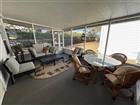 JUST REDUCED 10K! Discover life at Bel Aire Mobile Village, a pleasant 55+ community offering a spacious two-bedroom, two-bath home with 1, 540 square feet designed for enjoyment with the benefit of no rear neighbors. Residents of the park benefit from a modest $235.00 monthly maintenance fee that includes water, garbage, sewer, and lawn care. The park’s well-maintained sidewalks encourage pleasant strolls and offer opportunities to greet neighbors. Community amenities such as a clubhouse, swimming pool, shuffleboard courts, and other recreational facilities promote an active and social lifestyle. A small pet is permitted, adding to the appeal of this inviting home in an attentively maintained neighborhood. INTERIOR: This 1999 partly furnished home, newly listed is well worth a look. It offers an interior featuring central heating and air conditioning updated in 2023, along with ceiling fans, ceiling ducts, and a mix of drywall and wallboard throughout. A brand-new eat-in kitchen measuring 11×16 sq. ft. serves as a standout space, complete with soft-close cabinet doors, extensive storage, a light-filled atmosphere, and vinyl tile flooring. The stainless-steel appliance package includes an oven, range, refrigerator with ice maker, dishwasher, and microwave, while a washer and dryer are neatly tucked behind closed doors within the kitchen for a streamlined look. Just beyond the kitchen, a raised screened room with carpeting provides inviting seating areas ideal for enjoying the indoor-outdoor lifestyle Florida is so well known for. The split-bedroom floor plan enhances privacy, with the primary bedroom measuring 12×13 sq. ft. and offering exceptional flexibility. The bedroom includes a separate, finished room that can easily be transformed into a walk-in closet, dressing room, or an office—the possibilities truly are endless! An ensuite bath completes this private retreat, featuring an attractive vanity, stylish lighting, and a walk-in shower; both the primary bedroom and ensuite are shown without flooring, allowing you to select finishes that suit your taste. The new flooring trim is available for immediate installation. On the opposite side of the home, a grand living room measuring 13×20 sq. ft., displays parquet flooring and provides an ideal setting for entertaining. This space is open to the dining room, which features a large table with chairs and a buffet with a hutch and glass-front cabinets—perfect for exhibiting treasured items or special dinnerware. The guest bedroom includes laminate flooring, a substantial space for a small seating area, a walk-in closet, and abundant natural light. A guest bathroom offers a tub-and-shower combination with ample cabinetry for linens, towels, and toiletries, and is also shown without flooring—presenting yet another opportunity to complete the space just the way you envision. EXTERIOR: The outside of this home showcases easy-care vinyl siding paired with simple landscaping, creating a welcoming look from the street. You'll find plenty of parking in the two-car carport, and the 2024 shingle roof offers extra reassurance. Other notable features include a storage shed, awnings for shade and style, and a ramp leading directly to the screened room for simple access. With a price tag of $179, 000 and a share included, this home brings together appealing amenities, certain to draw interest!