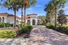 One or more photo(s) has been virtually staged. Located within the prestigious, gated community of Grand Hampton, this Mediterranean-inspired Taylor Woodrow residence at 20107 Oak Alley Drive offers 4 bedrooms, 4 bathrooms, a 3-car garage, and a private pool—an exceptional blend of architectural presence and elevated modern design. A sweeping paver driveway framed by Florida-friendly landscaping creates a striking approach. The signature elevated tower showcases arched openings, Solomonic columns, and architectural lighting that highlight its Mediterranean character. The covered entryway and double glass doors introduce bright interiors filled with natural light. Inside, arched windows illuminate the foyer, accented by tray ceilings with crown molding and Travertine tile flooring throughout the interior. Just off the entry, the formal dining room connects seamlessly to the main living areas. The dining space flows into the expansive family room, where oversized windows frame conservation views and the outdoor living area. A private office or flex space sits nearby. Down the hall, a full pool bath with a glass walk-in shower provides convenient exterior access. The primary suite is privately situated behind double doors and features tray ceilings with crown molding, recessed lighting, a custom inlay wall detail, expansive windows, private lanai access, and two walk-in closets. The primary ensuite bath includes a single extended vanity with dual sinks and granite countertops, a soaking tub, and a spacious glass walk-in shower. On the opposite wing, a quartz-appointed dry bar with wine refrigerator and upper and lower cabinetry enhances entertaining. The laundry room offers a stackable washer and dryer, utility sink, folding station, and ample cabinet storage. Bedrooms two and three share a Jack-and-Jill bath with dual sinks and modern finishes. The fully updated kitchen presents a clean, elevated design with quartz countertops, glass inlay cabinetry, apron-front sink, oversized island with seating, built-in pull-out trash bin, and recessed lighting. Premium Monogram stainless steel appliances include a gas range with hood, built-in microwave/convection oven, refrigerator, and integrated shelving. Two pantry closets—one a dedicated butler’s pantry—provide excellent storage. The adjacent dinette overlooks the pool and flows into the living area with sliding glass doors and tray ceilings. An expansive bonus/flex room offers space for a media room, game room, or secondary living area. Just off this space, the fourth bedroom and full bath create a private guest suite. The outdoor living area features an extended lanai finished in travertine pavers, two covered seating areas, and a screened pool with blue tile accents and ambient lighting. The outdoor kitchen is equipped with a built-in gas grill, cooktop, refrigerator, sink, and pull-out trash bin, all set against peaceful conservation views. The 3-car garage includes epoxy-coated floors, MyQ app-controlled openers, and two large storage areas, one with a workbench. NOTABLE UPDATES INCLUDE: Travertine Flooring, HVAC systems (2020 & 2021), Water Heater (2024), and Pool Pump (2026). Grand Hampton offers 24-hour gated security and resort-style amenities including a clubhouse, fitness center, lagoon and lap pools, tennis and basketball courts. Conveniently located near I-75 and I-275, AdventHealth, Pasco-Hernando State College, AdventHealth Center Ice, The Shops at Wiregrass, and Tampa Premium Outlets. Schedule your private showing today.