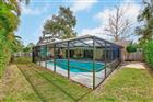 Charming and beautifully customized 2BR/2BA pool home in a quiet Largo neighborhood, located in a non-flood zone and just minutes to Indian Rocks Beach, parks, and everyday conveniences. This unique residence wraps around a sparkling screened pool, visible from all main living areas and the spacious primary suite featuring a walk-in closet with built-ins, vanity/sink area, and en-suite bath. The split-bedroom floor plan offers privacy, with a cozy guest bedroom and full bath on the opposite side. Bright living room with hardwood floors, kitchen with wood cabinetry, granite countertops, and breakfast bar seating. The breakfast nook and family room overlook the lush backyard. Dedicated laundry room includes storage, utility sink, and custom workspace. Attached 2-car garage currently used as a workshop. Outdoor living is exceptional with mature landscaping, flowering and fruiting trees, vegetable and herb beds, privacy fencing, hand-built pagoda, wishing well, potting tables, grilling area, sprinkler system, outdoor shower, and extensive garden spaces. A truly one-of-a-kind property, ideal as a primary residence, seasonal retreat, or vacation home. Furnishings negotiable.
