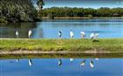 *Sellers are relocating out of state* Wake up to shimmering water views every day in this bright and open bird-lovers’ paradise overlooking Lake Seminole / Long Bayou and tranquil surrounding ponds. With high ceilings and an airy open-concept design, the Dining and Living Room seamlessly flow together — all thoughtfully positioned to showcase the unobstructed water views that steal the show the moment you walk in. Step outside to your private deck and savor peaceful sunrises as birds glide across the water, and roost in the mangroves. In the evening, relax on the covered front porch within your beautifully landscaped, private courtyard. Coastal vibes and décor enhance the atmosphere, and the home is partially furnished for added convenience. The kitchen has granite countertops, a new refrigerator, and a charming coffee bar. A spacious laundry closet offers exceptional storage space for your cleaning products. Designed with a desirable split-bedroom layout, the spacious Primary Suite offers water views, a large bathroom with a tiled shower, and a generous walk-in closet. The Guest Bedroom overlooks the lush, tropical courtyard with a spa-like feel, creating a peaceful retreat. The versatile third bedroom, complete with double doors, makes an ideal office, den, or additional bedroom. The 1-Car garage with opener provides convenient storage space, plus additional attic storage with a pull-down ladder — perfect for keeping everything organized. Nature lovers will appreciate the surrounding beauty and abundant birdlife, while outdoor enthusiasts will love being conveniently close to parks and the Pinellas Trail for biking and walking adventures. Located just 5 minutes from Madeira Beach, and near a multitude of shops, grocery stores, and schools, this home perfectly blends privacy with accessibility. The vibrant community offers over two miles of walking trails, a welcoming clubhouse, two pools (one heated with a Spa & BBQ grill area), and ample guest parking — creating a resort-like lifestyle surrounded by nature. If you’ve been searching for breathtaking waterfront views, peaceful surroundings, and a home that embraces the beauty of coastal living — this is the one!