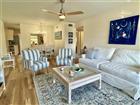 Enjoy the serenity of the scenic nature preserve from the comfort of your Florida Room in this beautifully furnished, 2 bed, 2 bath condo ideally situated on a quiet cul-de-sac. A rare, extra wide balcony bump out directly outside the front door provides the perfect spot for a small table and chairs, ideal for morning coffee or evening beverage. Step inside to an expansive Living Room/Dining Room area featuring luxury vinyl plank flooring, wide baseboard molding, and smooth ceilings (no popcorn). The tastefully updated kitchen is a true standout, offering slow close cabinetry with additional storage, granite countertops, ceramic tile backsplash, and ample prep space, making this kitchen a true delight for any home chef. The spacious primary suite provides comfort and privacy with an updated en-suite bath showcasing a modern vanity, updated commode, refreshed tile work, and contemporary lighting. The guest bathroom is equally impressive, featuring a second stall shower along with updated vanity, commode, tile, and lighting. All light switches and outlets have been replaced. The HVAC was replaced in 2018, and ceiling fans installed in all the main rooms to keep you cool. The windows have been updated and include marble sills, and the water heater was replaced in 2021. A washer and dryer are also included for your convenience. Located in a vibrant and amenity-rich 55+ community, residents enjoy two private golf courses (9- and 18-hole), two heated swimming pools, two activity centers, and a remodeled fitness center. Stay active with pickleball, tennis, fitness classes, dancing, clubs, cards, and billiards. Pet lovers will appreciate the fenced dog park with covered seating. Creative residents can take advantage of hobby studios and a woodshop, while the on-site Good Karma Café offers convenient snacks and beverages. Conveniently located near Gulf Coast beaches, shopping, dining, entertainment, and transportation, this condo offers the perfect blend of peaceful living and active lifestyle. Property is conveyed by leasehold estate deed; association approval required. If financing, 35% down payment is required. Schedule your private showing today and start enjoying comfortable, maintenance-free living in an active and welcoming community!