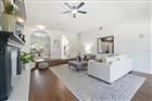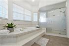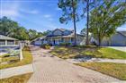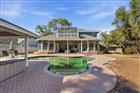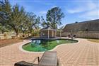 Under contract-accepting backup offers. Stunning Key West–style pool home located on a private cul-de-sac in desirable Landmark Palms. This spacious residence offers 5 bedrooms, including two master suites (one downstairs and one upstairs), 4 baths, and a 3-car garage with exceptional indoor/outdoor living. Dramatic two-story foyer with sweeping staircase and beautiful hardwood flooring. Formal dining room, private office/library, and oversized family room with wood-burning fireplace overlooking the lanai and pool. Gourmet kitchen features wood cabinetry, solid surface countertops, stainless steel appliances, walk-in pantry, and a bright breakfast area with floor-to-ceiling windows and stunning wood ceiling detail. The first-floor primary suite occupies a private wing and includes a fireplace, French doors to an enclosed spa room, and a luxurious bath with steam shower, soaking tub, and dual vanities. The upstairs living area offers a second master suite with private bath plus three additional bedrooms, two with access to a screened balcony. Resort-style backyard features a Pebble Tec-finished pool, gas-heated pool and spa, expansive paver deck, and poolside cabana with full bath and pre-plumbing ready for a future outdoor kitchen or bar. Fully fenced yard for privacy. Recent improvements include a new roof (2019), new hot water heater, and fresh interior paint. Conveniently located near beaches, shopping, medical facilities, airports, and top-rated schools. A rare opportunity in Landmark Palms — schedule your private showing today!