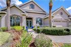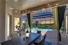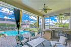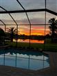 Under contract-accepting backup offers. One or more photo(s) has been virtually staged. Arthur Rutenberg craftsmanship defines this exceptional waterfront pool home in GATED Pasco Sunset Lakes featuring 4 bedrooms, 3 full baths, a private office, bonus room (or 5th bedroom), and a 3-car garage across 3, 523 sq ft on a .33-acre lot with a NEW Roof 2025. Elegant curb appeal begins with a paver driveway, sweeping walkway, welcoming front porch with decorative balustrade, and professionally upgraded landscaping with timed lighting. Inside, soaring 12–14 ft ceilings, engineered hardwood flooring installed 2023, rounded corner walls, and art niches create an immediate sense of elegance as natural light pours through the front glass double doors topped by a transom window. Just off the foyer, the office sits behind a glass double door and features an arched window with plantation shutters. The formal living room showcases crown molding and a dramatic architectural art niche framed by custom raised panel millwork. Expansive 10-ft sliding glass doors overlook the lanai and pool area, filling the space with natural light, while a wall of 10-ft windows creates a visual connection to the office. Architectural columns frame the entrance to the beautifully updated kitchen (2024) featuring a double tray ceiling with crown molding, 42-inch cabinetry with glass display cabinets above, modern crown molding and under-cabinet lighting, travertine tile backsplash, Cambria quartz countertops, and a walk-in pantry with decorative reeded glass door. The redesigned island offers curved counter-height seating with a granite composite sink and designer lighting above. A chef’s appliance suite includes a 5-burner gas cooktop with vent hood, built-in microwave and convection oven, dishwasher, and Café French-door refrigerator with dual drawers. The kitchen continues around to a pass-through to the dining room topped with decorative glass cabinets. The dinette’s tall bay windows overlook the pool, lanai, and tranquil pond. The adjoining family room offers a double tray ceiling, crown molding, recessed lighting, surround sound and two sets of 10-ft sliding glass doors with electric screen shades opening to the wraparound lanai and waterfront views. Step outside to a spectacular screened lanai designed for year-round Florida living with a paver deck, sparkling pool with spillover spa, outdoor granite bar, grilling station, and counter-height fire feature overlooking the tranquil pond, all within a fully fenced backyard. The private primary retreat is introduced by an elegant art niche entry and features a tray ceiling with crown molding, ceiling fan, and sitting area with French-door to the lanai. Dual custom walk-in closets lead to the spacious ensuite bath offering split vanities with quartz countertops, makeup space, soaking tub with tiled surround beneath a window with plantation shutters, walk-in shower with decorative Listello accents, private water closet, built-in shelving, and linen closet. A desirable 3-way split bedroom floor plan offers privacy and flexibility. A spacious bonus room and/or 5th bedroom with dual closets is paired with a nearby bedroom and renovated full bath with glass-door shower—ideal for guests or multi-generational living. Two additional generously sized bedrooms share another full bath.