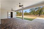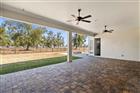 Welcome to this beautifully built Tapia home in the gated Treymont community. Sitting on an oversize prime lot, there are no direct neighbors to the right of the home which offers you a ton of privacy. Featuring attractive wood tile flooring throughout and a wonderful split floorplan, this home delights at every turn. When you enter the home, nature immediately draws your eyes outside through the large sliding door to a tranquil view of the farm that this home backs up to. To the left of the foyer, is a bonus room or office with glass french doors that allow privacy and the quiet you may need while working from home. The kitchen boasts upgraded stunning quartz countertops, dual pantries and storage galore. The large island overlooks the living room so when preparing meals, you’re included in the fun. There is also a space open to the kitchen that is perfect for a dining table. The laundry room has ample storage, and houses an additional refrigerator for extra food and beverages. Wood floor tile continues into the generously sized master bedroom with a big picture window, ceiling fan and a door that allows easy access to your back porch. Quartz counters continue into the master bathroom with double sinks, an enclosed glass shower, separate water closet, and a luxurious garden tub that is calling your name! The master closet includes custom floor to ceiling cabinets, ample drawers for clothes and shoe racks. The two other bedrooms have ceiling fans, soft carpet when barefoot, good storage in the closets and share a hall bathroom. The fourth bedroom is generously sized with an en-suite bathroom, quartz counters, direct access to the backyard and would be a perfect pool bath should you ever wish to add a jacuzzi or pool. The very large back porch is covered and there is a designated paved firepit area where you can relax after a long day and sit under the stars. Get ready for your neighbors to have garage envy, because depending on your car size, you could possibly fit up to four vehicles or other transportation toys. The garage has an additional sink and multiple ceiling racks that can be lowered for easy access to holiday decorations or storage bins. Additionally in the garage, there is an air purifier that is typically found in a woodworking shop and wall racks to store wood. Other home features include a whole home water softener and a tankless water heater. Conveniently located near major amenities including Publix, VA facilities, Sam’s Club, and a new hospital currently under construction, this home offers excellent future value. With no CDD fees and situated within a highly rated school district, this is the ideal home in a wonderful location. Come and see for yourself!