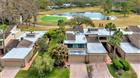Enjoy stunning golf course and water views from both the downstairs living areas and the spacious primary bedroom in this beautifully maintained 3-bedroom, 2.5-bath home. A striking double-entry glass front door welcomes you into a light-filled interior designed for comfort and style. The living room features a cozy fireplace, perfect for relaxing or entertaining, while the kitchen offers solid surface countertops and all appliances convey. The washer and dryer also convey, adding convenience and value. All bathrooms have been tastefully updated with modern finishes. The primary suite is a true retreat, showcasing breathtaking views, a large walk-in closet, single sinks, and an oversized walk-in shower. Additional highlights include hurricane impact windows for peace of mind, a dedicated laundry room with laundry tub, and a spacious 2-car garage. The home also features a pavered entry, enhancing curb appeal and providing a warm, inviting welcome. This exceptional property combines beautiful views, thoughtful updates, and everyday functionality—an opportunity you don’t want to miss.