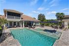 Rare custom estate on nearly an acre with serene pond views and a resort-style pool—this is the private Florida lifestyle buyers are searching for. Welcome to this stunning residence, perfectly situated on an expansive .79-acre homesite. Designed for both luxury living and effortless entertaining, this home offers 5 bedrooms or 4 bedrooms plus a bonus room, dedicated office, separate dining, and 4 full baths, all enhanced by soaring volume ceilings and impeccable craftsmanship. The thoughtfully designed floor plan includes an additional bedroom on the first floor, along with a luxurious primary suite featuring direct access to the outdoor living space. Rich hardwood flooring spans the entire first floor, complemented by elegant 8-foot doors throughout. The gourmet kitchen is a true showpiece, featuring premium Viking appliances, quartz countertops, farmhouse sink, custom stacked cabinetry with glass-front uppers and interior lighting, a large island, and a sunny eat-in area. The kitchen flows seamlessly into a generously sized family room with volume ceilings, creating the perfect gathering space. The 1st floor is complete with a full laundry room with folding table and utility sink adds everyday convenience. Upstairs, you’ll find two additional bedrooms and an enormous bonus room, all with custom built-out walk-in closets. Step outside to your private oasis—an open-air heated pool and spa overlooking tranquil water views, complete with a gas fireplace, new retractable lanai screens, and multiple seating areas. The space is fully enclosed with a new wrought iron fence for added privacy and elegance. Additional highlights include custom closet systems, plantation shutters, custom window treatments, and a $20K designer front door, along with refined finishes and abundant natural light throughout. This is more than a home—it’s a lifestyle of comfort, sophistication, and privacy in one of Tampa’s most desirable settings.