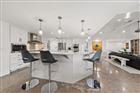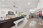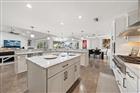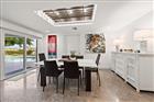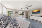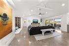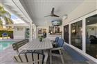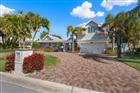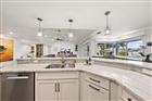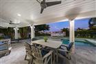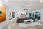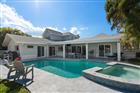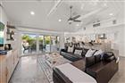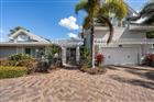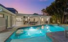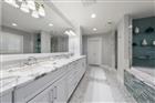 Perfectly poised in the highly sought-after Harbor Bluffs, this stunning move-in ready waterfront residence offers the ultimate blend of luxury, comfort, and effortless Florida living. From the moment you arrive, the pavered circular driveway and welcoming courtyard create unforgettable curb appeal, setting the tone for the designer finishes found throughout. Inside, limestone floors flow through an open, light-filled interior where a striking family room with a beamed ceiling and a dramatic wall of sliders seamlessly connects indoor and outdoor living. Step outside to your backyard oasis—fully fenced for privacy—where a beautifully refinished pool with elegant marble pavers and a spillover spa create a true resort-style setting. Designed for unforgettable entertaining, this outdoor retreat offers expansive lounging areas and seamless access from multiple rooms of the home. Double doors reveal a versatile flex room—ideal as a home gym, craft studio, or additional bedroom—with a full bath conveniently nearby. The showstopping dine-in kitchen is a chef’s dream, featuring quartz countertops, a six-burner gas range, double ovens, a Bosch dishwasher, pantry, oversized island with prep sink, and a breakfast bar illuminated by elegant pendant lighting. A stylish dry bar with wine fridge and abundant storage, along with a charming coffee bar for relaxed poolside mornings, elevate everyday living. Sliders off the dining area open directly to the pool, enhancing the home’s seamless flow, while a dedicated office provides quiet productivity. The exquisite primary suite is a serene retreat filled with natural light and private pool access. Its spa-inspired ensuite boasts dual vanities, custom tilework, a jetted tub, walk-in shower, and an extraordinary custom walk-in closet with built-ins and center island. Each additional bedroom is spacious and well-appointed with its own ensuite bath. Upstairs, a flexible bonus space—currently a billiard room—offers a full bath and kitchenette with beverage area, refrigerator, and disposal, making it ideal for guests or multigenerational living. For boating enthusiasts, this property is a true paradise, set on protected water and complete with a 14, 000-pound boat lift that accommodates a 24–26 ft boat, providing quick access to open water and endless days cruising the Intracoastal. With a whole-house generator, tankless water heater, flood barriers for every opening, a newer roof, and a quiet location close to dining, shopping, and the area’s beautiful beaches, this exceptional waterfront home truly has it all.
