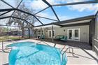 MOVE-IN READY POOL HOME WITH NO HOA OR CDD FEES! LOCATION. LOCATION. LOCATION. Beautifully maintained 2 BEDROOM, 2 BATHROOM, 2 CAR GARAGE POOL HOME offering comfort, style, and great curb appeal in a desirable location. From the moment you arrive, you'll notice the attractive PAVER DRIVEWAY, decorative STACKED-STONE ACCENTS, and column details that create a warm and welcoming exterior. Inside, the home features a desirable OPEN SPLIT FLOOR PLAN with LAMINATE WOOD-GRAIN FLOORING throughout, creating a seamless and inviting living space. The spacious family room showcases VAULTED CEILINGS and a stunning BRICK WOOD-BURNING FIREPLACE, making it the perfect place to relax or entertain. FRENCH DOORS lead directly to the screened pool area, blending indoor and outdoor Florida living. The UPDATED KITCHEN is both stylish and functional, featuring QUARTZ COUNTERTOPS, STAINLESS STEEL APPLIANCES, CABINETRY with decorative glass-front accents, CUSTOM SUBWAY TILE BACKSPLASH, a BREAKFAST BAR, and a TRAY CEILING. The EAT-IN KITCHEN with BAY WINDOW offers beautiful views of the pool and backyard. The PRIMARY SUITE serves as a private retreat with FRENCH DOORS WITH BUILT-IN BLINDS opening to the pool area. The UPDATED PRIMARY BATHROOM features a CUSTOM FLOOR-TO-CEILING TILED WALK-IN SHOWER with seamless glass enclosure, a separate tub , and a NEWER VANITY with GRANITE COUNTERTOPS. The GUEST BEDROOM and GUEST BATHROOM are generously sized, with the guest bath offering a tub/shower combination with glass door. Additional features include an INSIDE LAUNDRY ROOM with laundry tub and built-in cabinets for added storage. Step outside to enjoy the SCREENED POOL AREA, perfect for year-round entertaining, featuring a TILED COVERED PATIO, POOL, and additional screened patio space. The FENCED BACKYARD with mature landscaping provides privacy and a peaceful outdoor setting. Additional updates include a ROOF REPLACED IN 2018, NEW GARAGE DOOR INSTALLED IN 2020, and an AC SYSTEM INSTALLED IN 2013, giving buyers added peace of mind. Conveniently located close to shopping, restaurants, medical facilities, and entertainment, this home offers the perfect balance of accessibility and private Florida living. This well-maintained property combines MOVE-IN READY COMFORT, POOLSIDE LIVING, and the added benefit of NO HOA OR CDD FEES. Although there isn't a Mandatory HOA there is a voluntary HOA at 100 a year for access to the community club house / Pool / Tennis Courts. Home was used as a rental, primarily posted on furnished finder for traveling nurses.