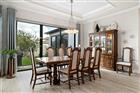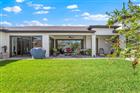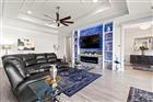 Set within the gated community of Epperson Ranch, this striking courtyard-style residence blends architectural character with refined finishes, offering a rare layout designed for both privacy and connection. Built in 2020 by luxury home builder Biscayne Homes, the single-story home spans 3, 142 square feet and features four bedrooms and three and a half bathrooms arranged around a private courtyard that fills the interior with natural light. Inside, open-concept living spaces are framed by 10-foot ceilings, tray ceilings, crown molding, and expansive sliding glass doors that create a seamless connection between the living room, dining area, and courtyard views. Luxury plank flooring flows throughout the home and is complemented by a custom-built electric fireplace that anchors the main living area. The thoughtful floor plan separates the primary suite from the secondary bedrooms, providing added privacy. The kitchen serves as the centerpiece of the home with light European-style cabinetry, granite countertops, stainless steal appliances, a gourmet cooktop with hood, apron sink, custom backsplash, and designer lighting. A large island provides space for gathering and casual seating, creating a natural focal point for everyday living and entertaining. Overlooking the private courtyard is a detached in-law suite featuring its own bedroom, bathroom, kitchenette, and private entrance. Outdoor living is enhanced by architectural paver hardscaping that extends throughout the property, creating a cohesive look across the courtyard, driveway, and newly expanded patio areas. The property also offers space to accommodate a future pool, providing flexibility for additional outdoor living and recreation. The home sits on a fenced corner lot and includes a three-car garage with an epoxy-coated garage floor finished with a triple-coat sealer, smart home features, interior and exterior security cameras, rain gutters, granite countertops throughout the home, and motorized Somfy shades in the living room, dining room, primary bedroom, and in-law suite. Residents enjoy the exceptional amenities of the Epperson Ranch community, including parks, trails, golf cart–friendly streets, and the 7.5-acre Crystal Lagoon featuring sandy beaches, cabanas, and resort-style recreation. Located in the heart of Wesley Chapel, the home offers convenient access to shopping, dining, entertainment, and everyday services. Adding to the area's continued growth, the new Johns Hopkins All Hospital currently under construction nearby will bring a major medical facility to the immediate area.