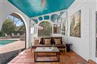 Welcome to La Bella Villa. Some homes reveal their beauty slowly. Others captivate the moment you arrive. Set on a lush tropical half-acre, La Bella Villa welcomes you through a graceful wrought-iron courtyard entry, a serene, shaded space that evokes a private retreat. Framed by vibrant bougainvillea, it introduces a home where every detail has been considered, from materials to the way light flows through the spaces. Inside, authentic Mexican clay Saltillo tile floors extend throughout the main living areas, grounding the home in warmth and timeless charm. Talavera tile accents bring artistry and color, while decorative ceiling tiles above the kitchen and dining area introduce texture and refinement. The gourmet kitchen is the heart of the home, featuring custom rustic pine cabinetry, open shelving, stainless steel appliances, and a hand-hammered copper sink that serves as both a focal point and a work of art. The main level features a secret hidden door, an element of intrigue and architectural detail, which conceals access to the primary bedroom retreat and a second generously sized bedroom, ideal for guests or a home office, along with two full bathrooms. Upstairs, two additional bedrooms share a full bathroom, with one opening onto its own screened patio, offering a peaceful spot for morning coffee or evening breezes. Outside, La Bella Villa transforms into a resort-style oasis. An oversized screened patio overlooks a sparkling pool, brick paver deck, fire pit, and a peaceful hammock lounge nestled among lush tropical landscaping. Homes offering this level of craftsmanship, charm, and resort-style atmosphere rarely come to market. La Bella Villa is more than a residence; it is a secluded Mediterranean-inspired escape in the heart of Tampa.