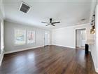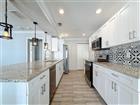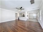 Under contract-accepting backup offers. This updated home in Plant City offers a practical layout with modern finishes. The main living area is open and connects directly to the kitchen and dining space. Wood-look flooring runs through the living room, while tile flooring is used in the kitchen. The kitchen features white shaker cabinets, granite countertops, stainless steel appliances, a tile backsplash, and a large breakfast bar that opens to the living area, which has crown molding. Pendant lighting and recessed lights provide good workspace lighting. The home includes 3 bedrooms with carpet and ceiling fans. The primary bedroom has an ensuite bath and sliding glass doors that lead to the backyard. The primary bathroom has been updated with a double-sink vanity, granite, and a walk-in shower with tile surround. This home also has washer/dryer hookup inside. Outside, the home has a covered front porch, a backyard with space for outdoor use, and plenty of parking. The property sits across the street from Gilchrist Park and is just a 0.7-mile walk to Historic Downtown Plant City and all it has to offer.