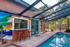 Located on a spacious corner lot just a mile from Indian Shores Beach, this stunning home offers both comfort and convenience—without the need for flood insurance. Be sure to check out the Matterport Virtual Tour! The main house features three oversized bedrooms, including a primary suite with a jetted tub, shower, and full bath. The main floor boasts vaulted ceilings in the living and dining areas, while the family room showcases a cozy wood-burning fireplace framed by a striking stone wall and wood ceiling. The kitchen, complete with a breakfast bar, overlooks a large heated saltwater pool. Adjacent to the kitchen, you'll find a ¾ bath and a laundry room for added convenience. The 2-story screened lanai offers seamless indoor-outdoor living, with direct access to the pool house, which features a ¾ bath, mini kitchen, three sets of French doors, and a guest Murphy bed. Behind the pool house sits a charming casita, ideal for a home office or additional guest space. Together, these two additional buildings add approximately 700 sq. ft. of extra living space. The fully fenced yard features a double-gated entry with ample parking for boats or recreational vehicles. Lush landscaping and refreshing ocean breezes create a serene oasis, while a wooden deck off the dining room provides the perfect setting for outdoor dining and entertaining. Updates completed in August 2022 include LVP flooring and baseboards throughout the main house, a new water heater, a roof with third-nail certification, an LED pool light, updated lanai, blinds, irrigation system, washer and dryer, refrigerator, garbage disposal, AC wall unit in the pool house, as well as new fixtures, ceiling fans, and lighting. Don’t miss the chance to own this beautiful coastal retreat—schedule your showing today!