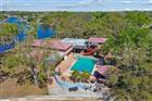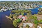 Welcome to this one-of-a-kind exclusive waterfront home pool home in Holiday, set on 1.18 acres at the end of a quiet cul-de-sac on the Anclote River, with water on three sides and approximately 630 feet of waterfront. Surrounded by beautiful moss-draped oak trees, the property offers a private and scenic setting with incredible potential. Featuring Spanish and Mediterranean-inspired architecture, the home showcases arched openings, beamed ceilings, and stone and wood accents throughout. The spacious floor plan includes a sunken formal living room, family room, dining room, office/den and an updated kitchen with a large island, waterfall countertop, range, double oven, and walk-in refrigerator. A flex space with a wet bar and fireplace adds versatility, while the ground floor bath includes dual sinks, sauna with Jacuzzi tub and walk in shower. Two private primary suites, each with separate staircase access, offers comfort and privacy, and both feature private balconies with beautiful water views. Outdoor highlights include a covered deck, gazebo, lanai, oversized 3-car garage, and an expansive yard with room for boat or RV parking and possible tennis court restoration. Buyers will appreciate the opportunity to add a dock and boat lift for easy access to the Gulf of America, perfect for boating, fishing, and enjoying the waterfront lifestyle. This exceptional property offers a rare setting and endless opportunity for updating and personalized touches to create a truly spectacular waterfront retreat. With no HOA and convenient access to Tarpon Springs, beaches, shopping, and dining, this is a rare chance to make it your own.
