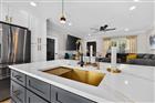 Welcome home to this stylishly renovated 3-bedroom, 1-bath block home nestled in the heart of St. Petersburg! From the moment you arrive, the expansive paver driveway and freshly updated exterior make a lasting first impression. Step through the elegant glass-panel entry door into a bright, open-concept living space featuring luxury vinyl plank flooring, crown molding, recessed lighting, and a sleek modern ceiling fan. The designer kitchen is truly the showpiece of the home — boasting quartz countertops with gold veining, crisp white shaker cabinets with brushed gold hardware, a striking bronze subway tile backsplash, stainless steel appliances, and a dramatic oversized island with a gold undermount sink and statement faucet. Whether you're entertaining or cooking for the family, this kitchen delivers both style and function. The open layout flows seamlessly between the kitchen and living area, making this home ideal for everyday living and entertaining alike. Outside, the fully fenced backyard offers a private retreat with a brand-new wood-framed covered pavilion over a paver patio — perfect for outdoor dining, entertaining, or future pool plans. A storage shed and generous green space round out the yard. Additional highlights include a 1-car garage, vinyl privacy fence, and an unbeatable location close to downtown St. Pete, world-class beaches, shopping, and dining. Don't miss this one — schedule your private showing today!