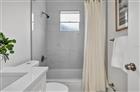 Under contract-accepting backup offers. Welcome to the sought-after community of Pebble Creek Village in the heart of New Tampa. This inviting 5-bedroom, 2.5-bath home offers 2, 141 square feet of living space with a spacious open layout and high ceilings that create an airy feel from the moment you enter. Decorative batten trim adds character to the entry and dining area. The kitchen features white quartz countertops, stainless steel appliances, and a large island with seating and waterfall quartz on both sides, flowing seamlessly into the living and dining spaces. The primary suite offers two large walk-in closets and a spacious bathroom with a double-sink quartz vanity and modern tile finishes. A fifth bedroom with French doors makes an ideal office or flex space. Enjoy the windowed back porch with screen door overlooking the fenced backyard. Additional highlights include a two-car garage, interior laundry room with utility sink and cabinetry, and a 2026 roof. Conveniently located about five miles from I-75 with easy access to Tampa, St. Petersburg, and the shopping and dining along Bruce B. Downs Boulevard. Buyer to verify public records for square footage, permitting, and home details.