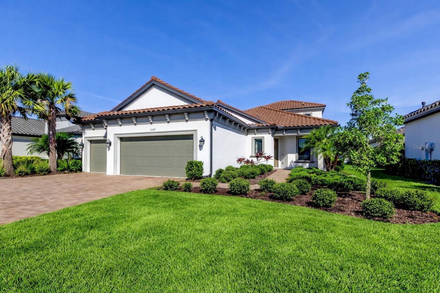 Welcome to this beautifully maintained 3 bedroom, 3.5 bathroom, 3 car garage home located in the exclusive gated community of Esplanade at Starkey Ranch. Built by Taylor Morrison in 2020 and offered by the original owners, this rare two story residence offers 2, 740 square feet of thoughtfully designed living space with peaceful waterfront views and no flood insurance required by lender. As you enter, you will immediately notice the bright open layout enhanced by 10 foot tray ceilings, crown molding, and expansive sliding glass doors that bring in an abundance of natural light. The gourmet kitchen is the heart of the home, featuring stone countertops, a large center island, gas range, stainless steel appliances, and a spacious walk in pantry, perfect for both everyday living and entertaining. The first floor owner’s suite offers a private retreat with serene water views, dual granite vanities, a large walk in shower, and an oversized closet with additional storage tucked under the stairs. A secondary bedroom with its own ensuite bath is also located downstairs, along with a convenient guest half bath. Upstairs, you will find a generous bonus room, a third bedroom, and a full bathroom, creating the ideal setup for guests or multi generational living. Step outside to the screened lanai and enjoy tranquil water views, perfect for relaxing or entertaining. The paver driveway and walkway add to the home’s curb appeal and overall charm. Esplanade at Starkey Ranch offers a low maintenance (lawn maintenance, fertilizing, mulch replacement, hedge trimming, and palm care INCLUDED in fees), resort style lifestyle with amenities including a clubhouse, 24 hour fitness center, spa, lap and resistance pools, pickleball courts, tennis, and more. Residents also enjoy access to all of Starkey Ranch’s amenities including multiple community pools, playgrounds, over 20 miles of scenic trails, dog parks, a kayak lake, and a top rated K through 8 STEM school. Conveniently located just 30 minutes from Tampa International Airport and the Gulf beaches, this meticulously maintained home is truly move in ready and offers the perfect blend of luxury, comfort, and lifestyle.