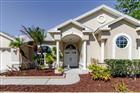Under contract-accepting backup offers. Spacious 4BR/2BA home on a large corner lot with pond views in desirable Riverside Village/Riverchase. Over 2, 000 sq ft with 12’ ceilings, wood/tile flooring, formal living & dining, and a family room open to the kitchen featuring wood cabinets, stainless steel appliances, range, island, and dinette. Private primary suite with dual walk-in closets, garden tub, separate shower, and dual vanities. French doors lead to a screened lanai with pavers overlooking the backyard with a Spa. No CDD, low HOA, low taxes. One-year home warranty. Motivated seller – shows great!