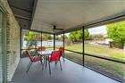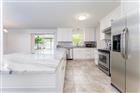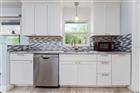 This gorgeous 2 bedroom, 2 bathroom home is a true gem in the sea of other homes. It stands out for all the good reasons & none of the bad. It may be a bit small in square footage, but it packs a mighty big punch! Fully renovated, tastefully modern, & completely move-in ready, you can move in & start enjoying life right away. Pull up & feel the calm: that striking blue shingle roof blends perfectly with the light, bright brick front, creating instant curb appeal that shines brighter than anything else you might be considering. Step inside to an open floor plan where the heart of the home steals the show; a chef’s dream kitchen with an enormous island (8.7' x 3.7', basically an island the size of Key West!) featuring cabinets & drawers for extra storage. This kitchen boasts crisp white soft-close cabinets, stainless steel appliances, gorgeous backsplash, & a seamless flow to the outdoors. Huge sliding glass doors make you feel at one with your massive quarter-acre lot, meshing indoor and outdoor living like they're almost one space. Love spending time outside? This place is perfect. The fully fenced yard gives you privacy & room to breathe, plus a screened-in lanai with a roof and brand-new overhead fan, ideal for enjoying sunsets, rain storms, or just cooling off in true Florida style. A storage shed keeps your gardening & landscaping gear tidy. A hallway from the living room leads to the bedrooms. The owner's retreat wraps you in comfort & serenity: large window flooding the space with natural light, closet, ceiling fan with built-in LED, and an updated ensuite bath with double sinks & a stunning shower. The guest bedroom offers two closets, two big windows for daytime sunlight (no lights needed!), & a ceiling fan/light fixture. The shared second bath is nicely updated with white tile, beautiful accent, & refreshed vanity. Convenience meets serenity: tucked in a friendly community where neighbors still wave as you drive by, yet just outside the neighborhood is a Publix-anchored plaza with a neighborhood favorite diner & everyday stores, limiting how far you ever need to go for errands. Low $50/year HOA, no CDD fees, Ring doorbell and perimeter security system included. Professionally deep-cleaned and sparkling; truly turn-key. Whether you work from home craving a peaceful place to focus & unwind, or you want a serene retreat to come home to every day, this home delivers comfort, peace, serenity, & a place to truly enjoy life. How much better does it get than that?! Smaller in size. Mighty in impact. Your slice of paradise is waiting.