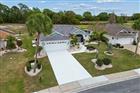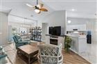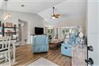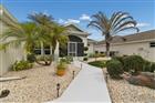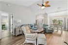 Welcome to this beautiful Nassau Model two bedroom/two bath POOL home with a conservation view. This Coloosa neighborhood home has a split plan, vaulted ceilings, living/dining combination. The master ensuite includes two walk-in closets, double sinks, walk-in shower and linen closet. The guest bedroom also has a walk-in closet. Flooring is luxury vinyl plank throughout with tile in the wet areas. Enjoy relaxing in the Florida Room as you look out onto your fully screened in new heated salt water pool and pavers built in 2024 which includes a beautiful view of a conservation area and a side view of the peaceful pond. The outdoor area includes a Weber Grill, utensil storage, new refrigerator and storage for pool floats and accessories. The laundry room includes a sink and the newer washer and dryer (12/2022). Out in the two-car garage you will find a pull down ladder for storage along with storage cabinets and shelving. Outside the home is an irrigation system as well as gutters around the home. The screened front porch provides a view of your neighbors as they walk their dogs or just relax and take in the fresh air. Some furnishings are available for purchase. This golf cart community is near I75 and within an hour of three international airports, major league sporting events, amusement parks and best of all--beautiful beaches. The amenities of Sun City Center include indoor and outdoor pools, fitness center, tennis and pickle ball courts and over 200 clubs/activities. Don't miss the opportunity to live in he best and most economical 55+ community in Florida.