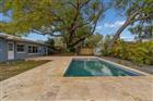 One or more photo(s) has been virtually staged. This three-bedroom, two-bathroom St. Petersburg pool home offers a bright open-concept layout, abundant natural light, and a backyard designed for enjoying the Florida lifestyle. This property is situated in a highly desired Flood Zone X (no flood insurance required). The long driveway provides generous off-street parking. Inside, the home features a welcoming open living and dining area with a modern kitchen that includes stainless steel appliances, a large kitchen sink, and a convenient breakfast bar that flows seamlessly into the main living space. Large windows fill the home with natural light, creating a bright and airy atmosphere throughout the living areas. The functional layout also includes the added convenience of an indoor laundry room. The backyard retreat features a 2024 swimming pool with beautiful travertine pavers as the centerpiece. The expansive patio provides space for outdoor dining, relaxing poolside, and entertaining guests while enjoying warm Florida evenings. Additionally, this home includes a metal roof installed at the end of 2025, offering durability and long-term peace of mind. Conveniently located near shopping, dining, parks, and just a short drive to the Gulf beaches, this home offers a wonderful opportunity to enjoy comfortable Florida living in St. Petersburg. One or more photos have been virtually staged. All information is deemed reliable but not guaranteed. Buyer and buyer’s agent to verify all measurements and information. Room sizes are approximate.