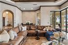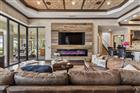Welcome to a waterfront residence where thoughtful design, modern comfort, and timeless character come together in perfect harmony. From the moment you step inside, a soaring foyer draws your eye straight through the living room to the sparkling pool and the tranquil lagoon beyond, a breathtaking first impression that sets the tone for the entire home. Sunset views from the screened-in pool area are nothing short of spectacular. Inside, tall ceilings, custom finishes, and curated textures create a warm, inviting atmosphere that never feels cavernous despite the home’s generous scale. The wine closet, framed by a custom-carved wood detail over glass, pairs beautifully with the striking bar area featuring a mirror-mosaic wall treatment. The family room, kitchen, and eat-in space flow seamlessly together, anchored by an incredible barnwood feature wall with hidden storage, a 77" TV, and an LED fireplace. A woven bamboo ceiling and softly glazed walls add depth and sophistication. The chef’s kitchen is a dream workspace, equipped with Viking appliances, a gas cooktop, a pantry closet, a butler’s pantry, a prep sink, granite countertops, and abundant storage. A mica-accented ceiling inset adds a subtle glow. Nearby, the large laundry room offers a sink and additional storage. Three bedrooms are located on the main level, including the serene primary suite. Overlooking the pool and lagoon, it features a raised sitting area, a massive custom closet, and beautiful lighting. The spa-inspired primary bath includes a walk-in shower facing an outdoor water feature, dual vanities, a makeup area, and a private water closet. The second bedroom includes an ensuite bath and walk-in closet, while the third bedroom offers a large walk-in closet and peaceful water views. The screened-in pool area features brick decking, a gas fireplace, and a fully equipped outdoor kitchen with a brand-new built-in gas grill, tile countertops, and ample storage. The 15, 000-square-foot lot includes 100 feet along the lagoon — one of Mirabay’s premier waterfront addresses. A low-maintenance riprap shoreline and a wood dock with power and water make it easy to enjoy kayaking, canoeing, or simply watching the sunset. Upstairs, you’ll find a private fourth bedroom with a walk-in closet, a full bath, and a spacious multipurpose room ideal for a home theater, fitness studio, or game room. Hand-painted ceiling details, textured walls, and a balcony overlooking the water add charm and character. Recent updates include three new AC units (2024 and 2026). The exterior is equally impressive, with lush tropical landscaping, split garages (one-car and two-car), and a wide paver driveway perfect for guests. A custom vertical fountain near the entry sets a soothing tone before you even step inside. There are custom decorative finishes throughout the home. Control4 home automation (multi-room audio, home theater, HVAC, partial interior lighting, monitored security, video surveillance, garage door control) provides comfort, convenience, and peace of mind. Located within a private gated enclave inside Mirabay, residents enjoy world-class amenities: pickleball, tennis, and basketball courts; a resort-style pool; a community restaurant; gym and sauna; playgrounds; yoga, stretch, and Zumba classes; plus complimentary kayaks, sailboats, and paddleboards. You truly never have to leave. And when you do, you’re just 30 minutes from downtown Tampa or St. Pete, and under an hour to Sarasota.
