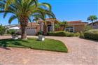 One or more photo(s) has been virtually staged. Perfectly positioned along the tranquil waterfront of Indian Rocks Beach, this Mediterranean-inspired residence captures the essence of relaxed coastal luxury. From the moment you arrive, a pavered circular driveway and grand double entry doors create striking curb appeal and a warm welcome. Inside, the home is open and filled with natural light, offering a thoughtfully designed layout that includes a dedicated office and a cozy formal living room anchored by a charming brick fireplace. The heart of the home is a beautifully appointed kitchen featuring granite countertops, a breakfast bar, and a center island, all seamlessly connected to a spacious family room with soaring vaulted ceilings, custom built-ins, and dramatic floor-to-ceiling windows that frame the breathtaking water views. French doors lead to an outdoor paradise where a sparkling pool and spa overlook the serene waterfront—perfect for entertaining, unwinding, or simply enjoying the sights of dolphins and manatees passing by. Spend your mornings on the water and your afternoons poolside, embracing the very best of Florida living. The split bedroom floor plan offers privacy, with a spacious primary suite filled with natural light, a walk-in closet, and an ensuite bath complete with double sink vanity, abundant storage, and a walk-in shower. Additional bedrooms are generously sized with ample closet space and share a well-appointed hall bath with a tub/shower combination. Enhanced by features such as crown molding and central vacuum, this home blends comfort with convenience. Ideally located near local shops, dining, and the area’s famous white sand beaches, with easy access to the mainland via the nearby Belleair Causeway, this exceptional waterfront retreat offers an unmatched coastal lifestyle.