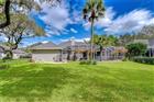Welcome to this beautifully maintained 4-bedroom, 3-bath residence located within the highly sought-after gated community of Canterbury Oaks—where thoughtful upgrades, timeless design, and true pride of ownership shine throughout. Major improvements have already been completed for peace of mind, including a new roof (2019), both AC units replaced in 2019, enhanced with REME HALO Air Purifier systems installed in 2024, a whole-house generator (2020), new water heater (2021), and a Kinetico water softener (2022). The kitchen was beautifully remodeled in 2017, while the pool was resurfaced in 2020 with updated tile, and the lanai was rescreened the same year. Plantation shutters were also added in 2022 in the main living areas and primary suite—further enhancing both style and function. Step inside to discover a light-filled, open-concept layout enhanced by crown molding, plantation shutters, and timeless architectural details throughout. The spacious family room serves as the heart of the home, featuring a gas fireplace with decorative columns and French doors that seamlessly extend your living space to the lanai. The remodeled kitchen is thoughtfully appointed with 42” white cabinetry with pull-out shelving, granite countertops, stainless steel appliances including a built-in convection oven and cooktop, and a center island with additional storage—ideal for both cooking and gathering. Just beyond, the formal dining room, accented with columns and French doors, provides an elegant setting for hosting. The primary suite is a true retreat, offering generous space, a private sitting area, and French doors leading to the lanai. The en-suite bath features dual vanities with granite countertops, a relaxing garden tub, and an impressive Roman-style walk-in shower with dual shower heads. A massive walk-in closet completes the suite. Secondary bedrooms are generously sized, with two connected by a convenient Jack-and-Jill bathroom, while all bathrooms feature granite countertops for a cohesive, upscale feel. Additional living spaces include a dedicated office/study and a large bonus room, providing flexibility for work, relaxation, or entertainment. Step outside to your private outdoor oasis—perfect for entertaining—featuring an expansive covered lanai, a sparkling pool and spa, and an extended pool deck. The fully fenced backyard offers plenty of room to play, framed by lush St. Augustine grass, mature oak trees, and enhanced by landscape lighting for added ambiance. Additional highlights include built-in surround sound in the family room, bonus room, and lanai, a well-equipped laundry room with cabinetry and utility sink, reclaimed water irrigation, and a side-entry 3-car garage. Situated on an oversized lot, this home showcases exceptional curb appeal and is conveniently located just minutes from shopping, dining, and top-rated schools.