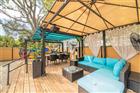 Discover a truly unique property in the highly sought-after Tyrone/Jungle Terrace neighborhood, set on a spacious ¼-acre lot and positioned high and dry (Flood zone D). This home offers not only character and charm, but also versatility and potential additional income . A flexible space that includes its own private entrance, bathroom, and kitchenette. Excellent possibility for rental income, guest accommodations, or multigenerational living. The main home is constructed of solid concrete block and features expansive windows that fill the space with natural light. Inside, you’ll find a functional layout. Main structure includes attached garage, dedicated laundry area, 2 bedrooms, 1 bathroom and a bonus room currently used as a media room. One of the standout features of this property is the detached rear garage space, thoughtfully designed as a dance studio and soundproof recording room—ideal for creatives, musicians, or those seeking a private workspace. Step outside into your own private retreat. The backyard, made for entertaining, featuring a large deck equipped with seating, dining area, and even a pizza oven. Enjoy unforgettable evenings with an outdoor movie projection setup, unwind in the hot tub, or relax on the sun loungers. The property also offers: Alley access with an automatic gate. Parking for multiple vehicles, including space for an RV or boat. All that and still plenty of yard space, perfect for pets or outdoor activities. A large storage shed for added convenience. Ideally located just minutes from the beaches, shopping, dining, and conveniences of the Tyrone area, this property combines lifestyle, location, and opportunity. A truly one-of-a-kind property ready to be elevated into something extraordinary!