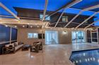 Luxury living awaits in this beautifully updated 5-bedroom, 3-bath executive home in The Eagles, offering 3, 852 sq ft, a bonus room, 3-car garage, and a heated saltwater pool with no rear neighbors. Inside, enjoy marble countertops throughout, a designer kitchen with GE black stainless appliances, LVP flooring, plantation shutters, and stylish custom finishes. The spacious primary suite features a sitting area, spa-like bath, and an impressive custom walk-in closet. A full bedroom and bath on the main level provide added flexibility. Step outside to a private oasis with a remodeled pool and expansive covered lanai, perfect for entertaining. Located in a gated golf community with top-rated schools, this move-in-ready home truly has it all.