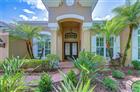 One or more photo(s) has been virtually staged. Experience this opulent, custom-designed Arthur Rutenberg St. Augustine VI floor plan, ideally situated in the highly coveted gated waterfront community of Pasco Sunset Lakes. Set on a tranquil 0.306-acre waterfront and conservation lot with breathtaking backyard vistas, this meticulously crafted 4-bed/3.5-bath/3-car garage home offers 3, 709 sq ft of elegant living space designed for comfort and entertaining. From the moment you arrive, you’ll be captivated by the decorative paver driveway and walkway, surrounded by lush, manicured landscaping with masonry edging and a vibrant lawn. A grand portico entrance sets the tone for the refined design throughout. Step through the 8-ft decorative double front doors with inset glass into a welcoming foyer featuring a tray ceiling, crown molding, and premium finishes including soaring ceilings, built-in speakers, rounded corners, art niches, and large-format tile floors. To the left, a formal dining room showcases crown molding and an arched window with plantation shutters. To the right, a spacious office with ceiling speakers sits adjacent to a stylish guest bath with pedestal sink. The open-concept layout highlights architectural excellence. At the heart of the home is the chef’s kitchen featuring a gas cooktop, side-by-side refrigerator, built-in oven and microwave, and dishwasher. Wood staggered cabinetry with crown molding, under-cabinet lighting, granite counters, tile backsplash, center island, walk-in pantry, and a high breakfast bar with pendant lighting complete the space. A Butler’s pantry with pass-thru glass-accented cabinetry and dual-sided storage enhances functionality for entertaining. The light-filled café area features tall triple windows with electric shades and doors leading to the lanai and pool deck. The formal living room impresses with a tray octagonal ceiling, crown molding, recessed lighting, and built-in speakers, framed by columns and highlighted by 10' triple sliders showcasing expansive backyard views. Open to the kitchen, the adjacent family room features a tray ceiling with crown, a ceiling fan, and two sets of 10’ triple sliders opening to the wraparound lanai. The primary suite offers a private retreat with a sitting area, bay windows, and access to the lanai, along with a private hallway leading to two spacious walk-in closets. The spa-like ensuite features a deep jetted soaking tub flanked by columns, a doorless tiled walk-in shower, separate vanities (including a makeup station), private water closet, recessed ceiling, and built-in shelving. Enjoy added privacy with a three-way split bedroom layout. Bedrooms 2 and 3 share a Jack and Jill bath, while bedroom 4 features its own closet, full bath, and French door access to the lanai. The laundry room, conveniently located off the kitchen, includes a utility sink, upper cabinets, washer/dryer, and additional storage. Step outside to your private backyard oasis—perfect for entertaining or relaxing. The screen-enclosed, wraparound lanai features a stylish paver deck, heated chlorinated free-form pool, and spillover spa. The outdoor kitchen includes a bar, built-in Big Green Egg grill, side burner, refrigerator, and a retractable awning for added shade. Beyond the lanai, enjoy beautifully landscaped grounds and panoramic conservation views. Don’t miss this rare opportunity to own a meticulously maintained home in one of the most sought-after communities—schedule your private tour today!