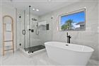 Fully Renovated Waterfront Home with Private Dock in Harbor Bluffs – 3 Ensuite Bedrooms + Powder Room. Welcome to this beautifully remodeled waterfront residence in the highly sought-after Harbor Bluffs community, offering the perfect blend of modern design and coastal living. This exceptional home features 3 spacious bedrooms, each with its own private ensuite bath, plus a separate powder room for guests—a rare and highly desirable layout. The luxury primary suite is a true retreat, showcasing a large walk-in closet and a spa-inspired bathroom complete with a freestanding soaking tub, oversized walk-in shower, and expansive double vanity. At the heart of the home, the fully updated kitchen impresses with white shaker cabinetry, a large statement island with contrasting blue shaker cabinets, and sleek quartz countertops with a full-height quartz backsplash for a seamless, modern look. Outfitted with premium KitchenAid stainless steel appliances, this space is perfect for both everyday living and entertaining. Throughout the home, you’ll find extra-wide plank luxury vinyl flooring, combining durability with contemporary style. All bathrooms are finished with quartz countertops and extra-large porcelain tile, delivering a clean, high-end feel. Step outside and enjoy true Florida waterfront living with a large private dock, ideal for boating, fishing, or relaxing while taking in serene water views.