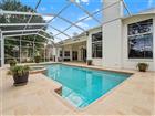Exceptional opportunity to own one of Tampa Palms’ most distinctive custom waterfront homes, perfectly positioned on an oversized homesite in the gated village of Huntington. Set on an impressive homesite, this residence immediately stands apart with its architectural presence, welcomed by a stately portico, circular driveway, and elegant porte'-cochere, all framed by beautifully maintained landscaping that creates a warm and lasting first impression. Step through the double wood and leaded glass doors into a light-filled interior where dramatic architectural details immediately take center stage. Soaring 14 foot ceilings, extensive crown molding, and expansive sightlines create a sense of openness and scale, while custom 10 foot sliding glass doors draw your eye straight to the outdoor living space beyond. The formal living and dining areas are anchored by an elegant foyer and designer lighting, offering a grand yet inviting introduction. A private den with double door entry provides the perfect space for a home office or study. The home flows effortlessly into a stunning main living area designed for both comfort and impact, where rich finishes, large windows, and natural light come together to frame tranquil water views. At the heart of the home, the kitchen offers both function and style with 42 inch cabinetry, granite countertops, a built-in desk, gas cooktop, and a spacious nook overlooking the pool and water. The primary suite is privately positioned and thoughtfully designed as a true retreat, featuring a sitting area, direct access to the lanai, dual walk-in closets, and a well-appointed bath with garden tub, separate shower, and dual vanities with granite countertops. Additional bedrooms are well proportioned, and a dedicated office adds flexibility for today’s lifestyle. A fifth bedroom offers even more versatility and may easily be used as a bonus room, media space, or guest retreat depending on your needs. This home has been meticulously maintained and extensively upgraded, with over $330, 000 in improvements including a newer roof in 2022, updated air conditioning systems in 2023, remodeled kitchen and bathrooms, resurfaced pool and deck, updated landscaping, and more. Enjoy a private setting with a resurfaced pool and spa, an updated pool deck, and a replaced pool cage with recent rescreening, all overlooking peaceful water views and a spacious backyard. Ideally located in the heart of New Tampa, residents enjoy access to Compton Park and all the amenities Tampa Palms is known for, along with close proximity to top rated schools, major hospitals including Moffitt Cancer Center, AdventHealth, and the VA Hospital, as well as USF, I 75.