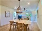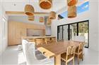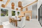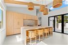 Welcome to a truly exceptional residence, thoughtfully designed and newly built in 2025 by renowned builder Kasper Modern. This one-of-a-kind home blends mid-century modern architecture with a refined Japandi aesthetic, creating a calm, elevated living experience centered around light, texture, and flow. Designed with intention, the home wraps seamlessly around a private pool courtyard, allowing indoor and outdoor living to become one, with expansive sliding doors that open to a tranquil water feature and create a peaceful, resort-like atmosphere throughout. The main residence offers a split floor plan with 3 bedrooms and 2.5 baths, designed for both privacy and connection, with every detail curated from the level 5 wall finish to the oversized 4’ x 4’ porcelain tile flooring that flows continuously throughout the space. The kitchen serves as a true centerpiece, featuring custom European cabinetry, natural travertine countertops, handmade zellige tile backsplash, a gas range with luxury appliances, an integrated below-counter microwave, and a built-in bar complete with wine and beverage refrigerators. The primary suite feels like a private retreat with a spa-inspired bath showcasing handmade Zia cement tile, high-end Brizo fixtures, and clean, calming finishes that reflect the home’s Japandi design philosophy. This home was curated with a focus on simplicity, warmth, and natural materials, including a custom lighting installation in the main living space that creates a statement by day and soft ambient mood lighting at night. Hurricane-impact windows with integrated blinds, a gas on-demand water heater, and a gas dryer add to the home’s thoughtful functionality, while multiple rooms enjoy seamless indoor-outdoor flow with views of the pool. A fully equipped 2-bedroom, 1-bath garage apartment sits above the spacious 2-car garage, offering flexibility for guests, extended family, or potential income. The enclosed backyard provides total privacy, centered around a beautifully designed pool and lounge area that delivers a true sense of retreat, especially when the home is opened up to let the sound of the water feature carry throughout. Located in a non-flood zone, this property offers additional peace of mind while maintaining close proximity to everything St. Petersburg. Designer furnishings are available, completing a home that is not cookie-cutter but instead a carefully crafted living experience where every element feels intentional, calming, and elevated.