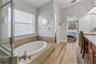 Stunning curb appeal and offering nearly 3, 400 sq ft, this impeccably maintained home features 5 bedrooms, 4 baths, an office/den, an upstairs bonus suite, and a 3-car garage, situated in the desirable Meadow Pointe III community and zoned for Double Branch Elementary, John Long Middle, and Wiregrass Ranch High, this home blends casual elegance with a serene pond with wooded conservation views. As you enter the foyer, it opens to a welcoming living area and French doors to a flex office or could be used as a 6th bedroom. An arched opening leads to the formal dining room, highlighted by a custom built-in cabinet with a granite top that creates a stunning serving and display area for entertaining. The gourmet kitchen is the heart of the home and is designed for both function and style. Enjoy warm 42" wood cabinetry with pull-out drawers, gleaming counters, an island breakfast bar, stainless steel appliances and pantry closet. The kitchen flows seamlessly into the large great room/family room with newer LVP flooring and an adjacent breakfast nook, creating an open-concept layout perfect for everyday living and gatherings. Separate formal living and dining rooms provide additional options for hosting guests. The primary suite is conveniently located on the main level and features beautiful LVP flooring and peaceful views of the wooded conservation area. The en-suite bath includes dual sinks, solid-surface counters, a garden tub, and a large separate walk-in shower. Secondary bedrooms and baths on the main floor offers flexibility for family, guests, or multi-generational living. Upstairs, an impressive bonus room, private 5th bedroom, and full bath create an ideal guest suite, media room, or teen retreat. This upper-level space adds valuable extra living area while maintaining privacy from the main level. Outdoor living shines with a spacious fenced backyard and a screen-enclosed lanai space ready for a future outdoor kitchen or pool. Relax on the back lanai and enjoy the natural setting, privacy, and tranquil conservation views.Meadow Pointe III offers a full array of amenities, including a clubhouse, resort-style swimming pool, splash zone, fitness center, tennis, basketball, and shuffleboard courts, as well as multiple playgrounds. The community is conveniently located near I-75 and I-275, shopping, restaurants, medical facilities, The Shops at Wiregrass, Tampa Premium Outlets, and more.