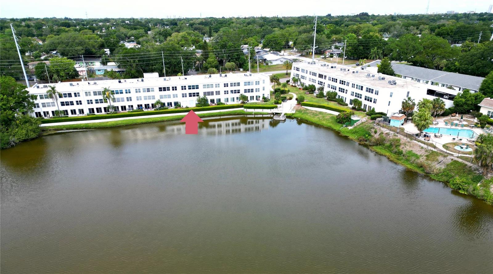 This high demand first-floor condo with a Front and Back Patio's --- a rare and highly desirable feature not available on upper-level units, with tons of natural light offering tranquil water views in this 2 bedroom, 2 bath at Penthouse Groves. This home features elegant ceramic tile flooring throughout the main living areas, and laminate in the bedrooms. The spacious, open-concept living and dining room overlooks a serene pond, creating a peaceful atmosphere. Sip your coffee and watch the sun rise over the pond! The kitchen has granite countertop and was designed for convenience, featuring a rolling island and a generous closet pantry while looking at the pond. The expansive primary bedroom easily accommodates a king-size bed and walk-in closet, the second bedroom offers plenty of room for comfort. There is also a extra-large closet for storage. Both bedrooms feature sliding glass doors that lead to a cozy front patio—ideal for enjoying the outdoors and socializing with neighbors. The unit includes one assigned carport parking space just steps from the front door, along with nine guest parking spaces conveniently located at this end of Building J. Penthouse Groves is an active and welcoming 55+ community as well as a non-flood zone. This building also passed the Milestone engineering review offering an added peace of mind. The monthly HOA fee of $536 includes access to an impressive range of amenities: Internet, fitness center, sauna, shuffleboard, community dock, sparkling pool with lounge chair seating area, large clubhouse with full kitchen, billiard room, library, card room, grilling area, as well as water, sewer, trash, and exterior grounds maintenance. For outdoor enthusiasts, the community dock offers the perfect place to fish or simply enjoy the peaceful pond views. Ideally situated in mid-county Clearwater, this home is five blocks from Publix, shopping, and dining with the beach 15 minutes away. Tampa International Airport and Clearwater/St. Pete Airport are within a 30-minute drive. Schedule a showing today for this incredible opportunity before its gone. Measurements are all approximate.