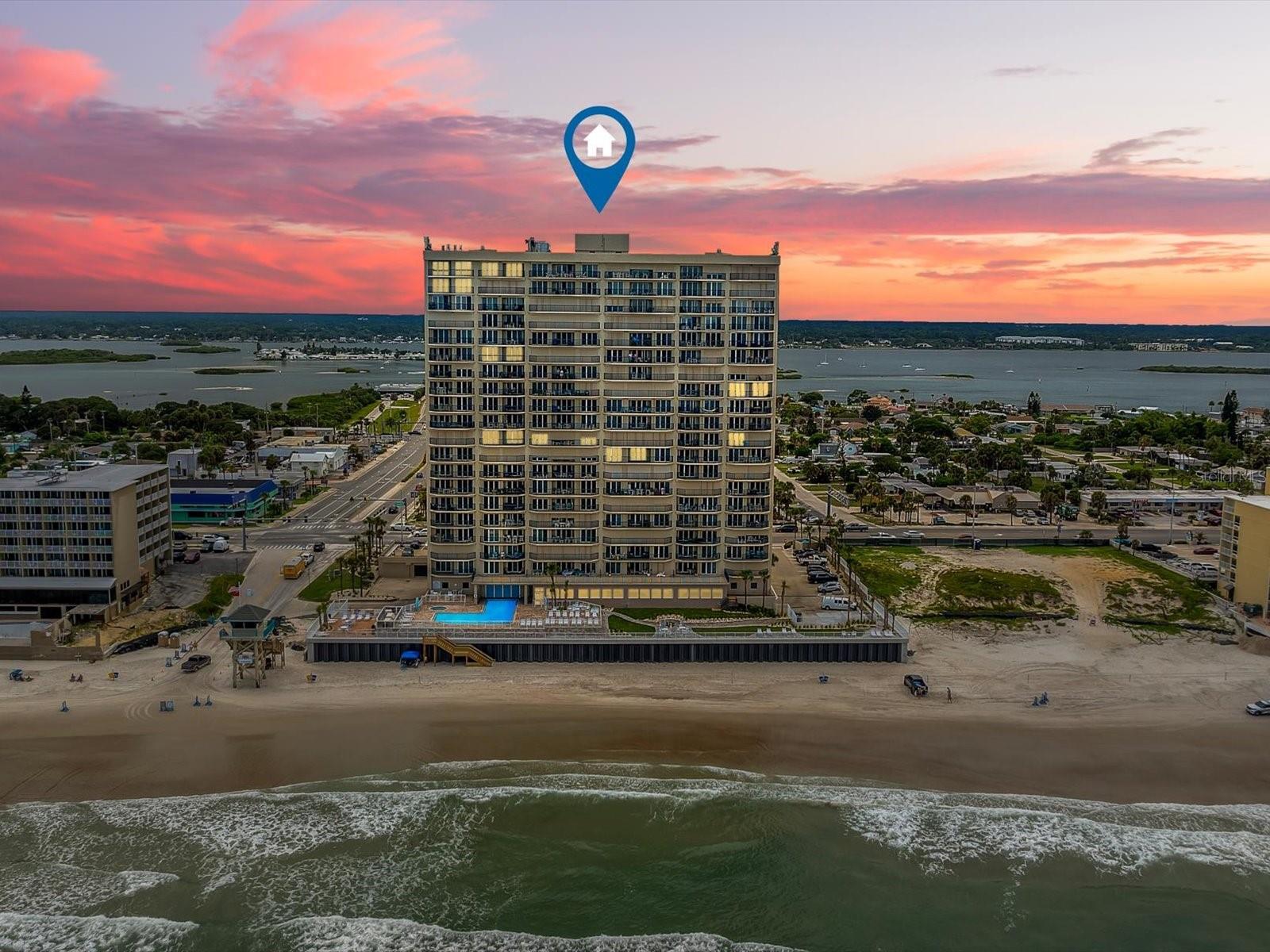 Indulge in the coastal lifestyle dreams are made of in this delightful 2-bedroom, 2-bath Daytona Beach Shores condo residence perched just off the ocean! ***FULLY FURNISHED & MOVE-IN READY*** Past the wide-open river views, venture into the cozy unit where soft earth tones, breezy ceiling fans, and easy-care tile flooring are on show. The natural light lends a warm, vibrant atmosphere across the open-concept main gathering areas, enhanced by expansive mirrored walls that add more depth. Serene blue water views are on display beyond the floor to ceiling sliding glass doors. A complement of stainless steel appliances, ample cabinetry, and gleaming countertops await in the kitchen, along with a cute breakfast nook featuring an attractive window counter. Retire to your primary suite haven with its balcony access, multiple mirrored closets, and a refreshing ensuite with dual vanities, a separate shower, and a soaking tub. Step out to the extensive, covered deck where you can sip morning coffee amidst a majestic backdrop of the Atlantic Ocean. Enjoy the fabulous building NEWLY REBUILT amenities such as pool and sun bathing ocean deck, social halls, recreational rooms, a fitness center, and a library. Plus, shopping, dining, and the beach are conveniently nearby. Notably, the building’s structural integrity assessment has been completed. Come for a tour before it slips you by!