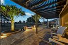 Perfectly positioned on hole #3 with one of the most breathtaking golf course frontage lots in Stone Creek, this Pinnacle model offers nearly 2, 600 square feet of thoughtfully designed living space, 3 bedrooms, 3 full baths, a dedicated office, and a rare 3-car garage configuration including a separate golf cart garage with a 2-foot length extension for added space and functionality. From the moment you enter, you'll notice the elevated finishes, wood flooring throughout the main living areas, crown molding through most of the home, rounded corners, surround sound, and a stunning glass wall that draws your eye straight to the sweeping golf views. The living room features a reinforced TV wall mount and flows seamlessly to the screened lanai, also equipped with a reinforced mount and a remote-controlled retractable screen, creating effortless indoor-outdoor living. The kitchen is both elegant and functional, highlighted by a sleek glass cooktop, generous prep space, and an open layout designed for entertaining. Safety and peace of mind were carefully considered with upgraded smoke and carbon monoxide detectors, water leak alert systems under the refrigerator, dishwasher, and washing machine, a Generac whole-home generator, and a brand-new AC system installed in July 2025. The primary suite is a true retreat--generous in size with tray ceilings and large windows overlooking the course. The ensuite bath is beautifully designed with dual vanities, a frameless glass shower, a separate soaking tub, tile flooring, and a huge custom-designed walk-in closet that feels like a private dressing room. Each guest suite offers privacy and comfort. The second bedroom features beautiful bay windows, a spacious walk-in closet, and its own ensuite bath with a stand-up shower and deep vanity. The third bedroom is equally generous with a walk-in closet and an ensuite bath complete with a shower/tub combination. The dedicated office, complete with dual barn doors, provides the perfect flex space for work, hobbies, or a quiet reading retreat. Step outside to your private backyard oasis where the views truly shine. Enjoy the screened lanai, custom hardscape, a remote-controlled fountain, pergola, fully fenced yard, recently replaced St. Augustine hybrid sod, gutters around the entire home, and leaf guard screens along the rear for easy maintenance, all designed to enhance both beauty and practicality. This is more than a home, it's a front-row seat to golf course living in one of Ocala's most sought-after communities. Thoughtfully upgraded, meticulously maintained, and positioned on one of the finest lots in the neighborhood, this Stone Creek showpiece delivers luxury, comfort, and lifestyle in one extraordinary package.