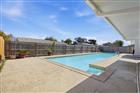 Well maintained 3- bedroom, 2 1/2 bath room home within the desirable and quiet Lantern Park subdivision of South Daytona. Split floor plan with all bedrooms featuring walk-in closets. This home features a covered front porch entry and fenced backyard. Open living and dining areas connect to a spacious Florida room overlooking the pool and patio for year-round indoor-outdoor use. Extra-large, elongated solar-heated pool designed for lap swimming and entertaining. Remodeled kitchen with white cabinetry, quartz countertops, and updated appliances. Glue-down vinyl flooring throughout the entire home. Two-car garage includes a convenient half bath. Roof, air conditioning, and water heater are all newer. Located near shopping, dining, schools, public transportation routes, major roadways, and area beaches.
